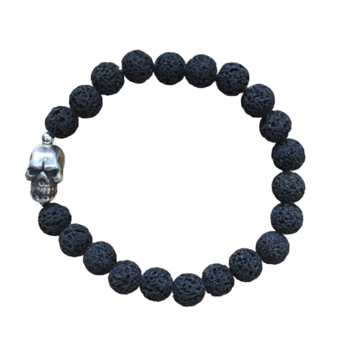 Bronzit (matt) Armband 10mm mit Totenkopf Silber 925 geschwärzt