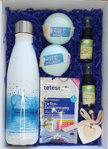 Vorheriges Produkt Nächstes Produkt Geschenkbox „Acqua“ CHF55.00 Entspannung pur! Geschenkbox „Acqua“. Geschenkbox "Acqua" quantity Add to cart SKU: LGB035 Categories: Beauty, Freundschaft Tags: Beauty, Erholung, Geschenkbox, Lieblingsgeschenkbox, Spa, Welness Description Reviews (0) Description Geschenkkorb enthält: Hochwertiger Geschenkbox 1x Design Thermoflasche „Acqua“ 500 ml Flaschen „14zero3“ 1x Raumspray „Glück“ Aromalife 30ml 1x Raumspray „Reine Atmosphäre“ Aromalife 30ml 2x BadeKugel „Mint & Bergamot“ 180g 1x Beutel Meeressalz „Tiefen-Entspannung“ 80g 1x Herzdekoration aus Gips und Holz mit schleife zum Aufgängen Diverse Deko Material Reviews There are no reviews yet. Be the first to review “Geschenkbox „Acqua“” Antwort abbrechenDeine E-Mail-Adresse wird nicht veröffentlicht. Erforderliche Felder sind mit * markiertYour rating * Rate… Perfect Good Average Not that bad Very poor Your review *Name * Email * Name, E-Mail-Adresse und Website in diesem Browser für meinen nächsten Kommentar speichern. Related products Schnellansicht Schnellansicht BeautyGeschenkbox „Relax“ CHF59.00 Add to cart Schnellansicht Schnellansicht BeautyGeschenkbox „Beauty“ CHF69.00 Add to cart Schnellansicht Schnellansicht Beauty, FreundschaftGeschenkbox „Relax“ CHF39.00 Add to cart