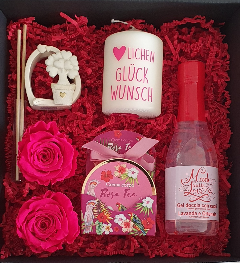 Vorheriges Produkt Nächstes Produkt Geschenkbox „Glückwunsch“ CHF45.00 Entspannung pur! Geschenkbox „Glückwunsch“ Geschenkbox "Glückwunsch" quantity Add to cart SKU: LGB009 Categories: Beauty, Freundschaft Tags: Beauty, Erholung, Freundschaft, Geschenkbox, Lieblingsgeschenkbox, Spa, Welness Description Reviews (0) Description Geschenkkorb enthält: Hochwertiger Geschenkbox 1x Duftdifuser Herz Lebensbaum mit Duftstab 1x Herzlichen Glückwunsch Kerze 1x Body Creme „Rosa Tea“ 1x Shower Gel „Made with Love“ 2x Rosen Stabilis (Stabilisierte Rosen/ ca. 1 Jahr Haltbar) Deko Material Reviews There are no reviews yet. Be the first to review “Geschenkbox „Glückwunsch“” Antwort abbrechenDeine E-Mail-Adresse wird nicht veröffentlicht. Erforderliche Felder sind mit * markiertYour rating * Rate… Perfect Good Average Not that bad Very poor Your review *Name * Email * Name, E-Mail-Adresse und Website in diesem Browser für meinen nächsten Kommentar speichern. Related products Schnellansicht Schnellansicht Beauty, FreundschaftGeschenkbox „Sweet“ CHF58.00 Add to cart Schnellansicht Schnellansicht Beauty, FreundschaftGeschenkbox „Aloe Vera“ CHF45.00 Add to cart Schnellansicht Schnellansicht Beauty, FreundschaftGeschenkbox „Have a good Day“ CHF42.00 Add to cart