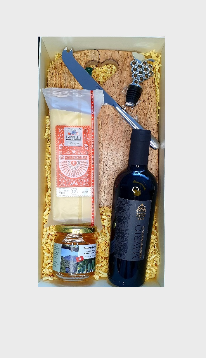 Vorheriges Produkt Nächstes Produkt Geschenkbox „Happy Hour“ CHF74.00 Happy Hour is the best Hour!! Geschenkbox „Happy Hour“ Geschenkbox "Happy Hour" quantity Add to cart SKU: LGB040 Category: Freundschaft Tags: Erholung, Freundschaft, Geschenkbox, Lieblingsgeschenkbox, Spa, Welness Description Reviews (0) Description Geschenkkorb enthält: Hochwertiger Magnet Geschenkbox 1x Negroamaro Salento IGP Mavrio 37.5cl 2019 1x Weinflaschenverschluss „Traube“, Edelstahl 1x Schneidbrett „Herz“ aus Mangoholz 25cm 1x Tessiner Blütenhonig 250g 1x Käsemesser Organic“Sola“ 21cm 1x Emmentaler Käse „Classique“ 250g Diverse Deko Material Reviews There are no reviews yet. Be the first to review “Geschenkbox „Happy Hour“” Antwort abbrechenDeine E-Mail-Adresse wird nicht veröffentlicht. Erforderliche Felder sind mit * markiertYour rating * Rate… Perfect Good Average Not that bad Very poor Your review *Name * Email * Name, E-Mail-Adresse und Website in diesem Browser für meinen nächsten Kommentar speichern. Related products Schnellansicht Schnellansicht FreundschaftGeschenkbox „Innamorate“ CHF49.00 Add to cart Schnellansicht Schnellansicht FreundschaftGeschenkbox „Summer Time“ CHF37.00 Add to cart Schnellansicht Schnellansicht Beauty, FreundschaftGeschenkbox „Energie“ CHF99.00 Add to cart